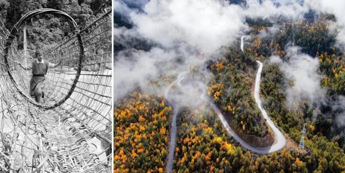 拼版相片:左图是朱脱县俗鲁匿布江上的藤桥(20世纪80年月原料像片,新华社记者 瞅绶康 摄);左图是2020年11月5日拍摄的派朱马路米林段马路。新华社收